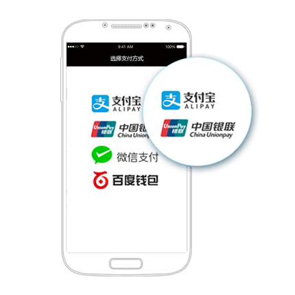 支付网关,为iOS/Android原生/H5 App提供支付解决方案:支持微信支付、支付宝支付、银联手机支付、百度钱包等。